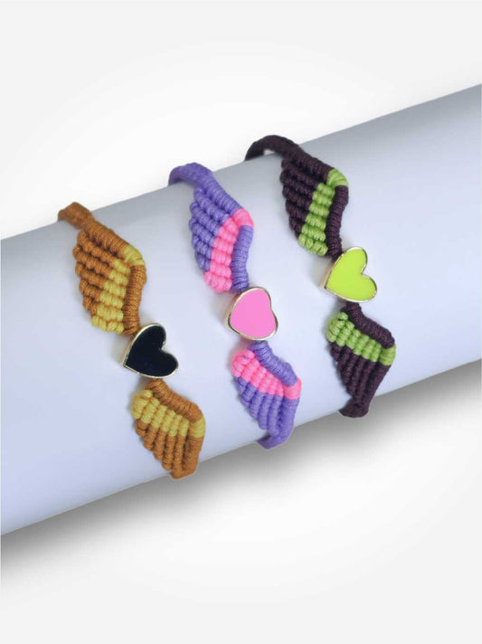 Macramé Wings Bracelet with Gold-Plated Heart Charm